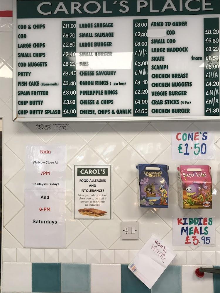Located in the vibrant neighborhood of Acklam, Carols Plaice perfectly captures the essence of a traditional British chippy. This takeout joint draws crowds from across Middlesbrough, renowned for its sea-fresh meals and crisp, non-greasy batter. The restaurant's strategic position on Trimdon Avenue makes it accessible for those looking for a satisfying lunch or dinner without breaking the bank. Its wheelchair-accessible entrance and seating further enhance its appeal, making it inclusive for all. The lovely staff contributes significantly to the establishment's charm, ensuring a pleasant experience for everyone who walks in. Regular customers rave about the fresh ingredients and the inviting ambiance, making it a beloved staple in the community. Weekend evenings can draw a crowd, so plan accordingly to avoid waiting too long; reservations are accepted for dine-in experiences. Carols Plaice truly embodies the local spirit of Middlesbrough, serving as a gathering place for fish and chips lovers.